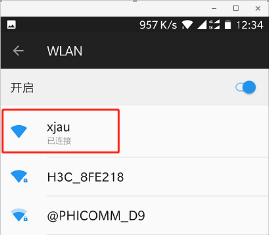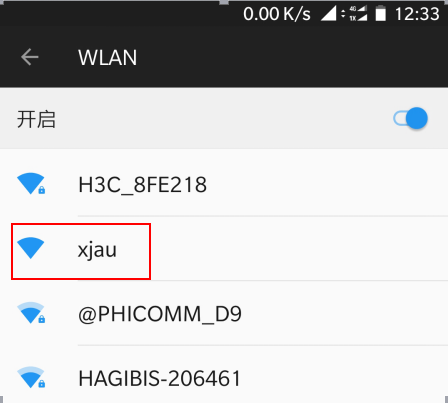步骤一:打开手机WLAN,找到名称为xjau无线网络。