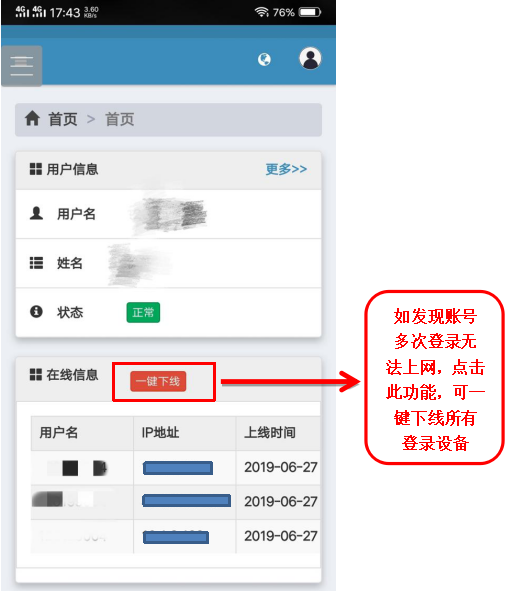 注:每个宽带账号可登录1台有线PC端设备(台式电脑、一体机、笔记本电脑),2台无线移动端设备(手机、平板电脑)。一次登录,48小时内,无需再次输入用户名及密码进行认证。